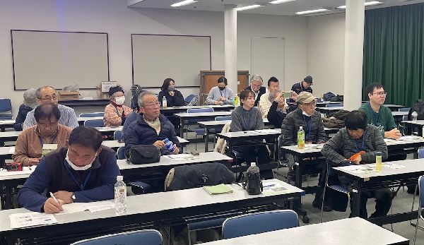 【大阪のシダと標本庫 これまでとこれから】 日 時: 2025年9月7日(日) 午後3時〜5時 会 場: 大阪市立自然史博物館 講堂 Tel:06-6697-6221 プログラム: ・川端清司館長挨拶 ・大阪市立自然史博物館植物標本庫の概要と『新訂 大阪府植物目録 第1巻 シダ植物』 … 長谷川匡弘氏(大阪市立自然史博物館主任学芸員) ・『新訂 大阪府植物目録 第1巻 シダ植物』のシダから 瀬戸剛さんの認識力 … 山住一郎氏(近畿植物同好会会長) ・瀬戸さんのハーバリウム・マネージメント 縁の下の力持ち … 岡本素治氏(きしわだ自然資料館館長 元大阪市立自然史博物館植物研学芸員) ・初対面から65年 瀬戸さんの標本から学んだこと … 梅原徹 氏(認定NPO法人大阪自然史センター 理事長) ・奈良県のフロラ調査と瀬戸さん … 尾上聖子氏(奈良植物同好会) 進行:佐久間大輔氏(大阪市立自然史博物館) 主催:大阪市立自然史博物館・しだとこけ談話会・奈良植物同好会・近畿植物同好会 会場風景